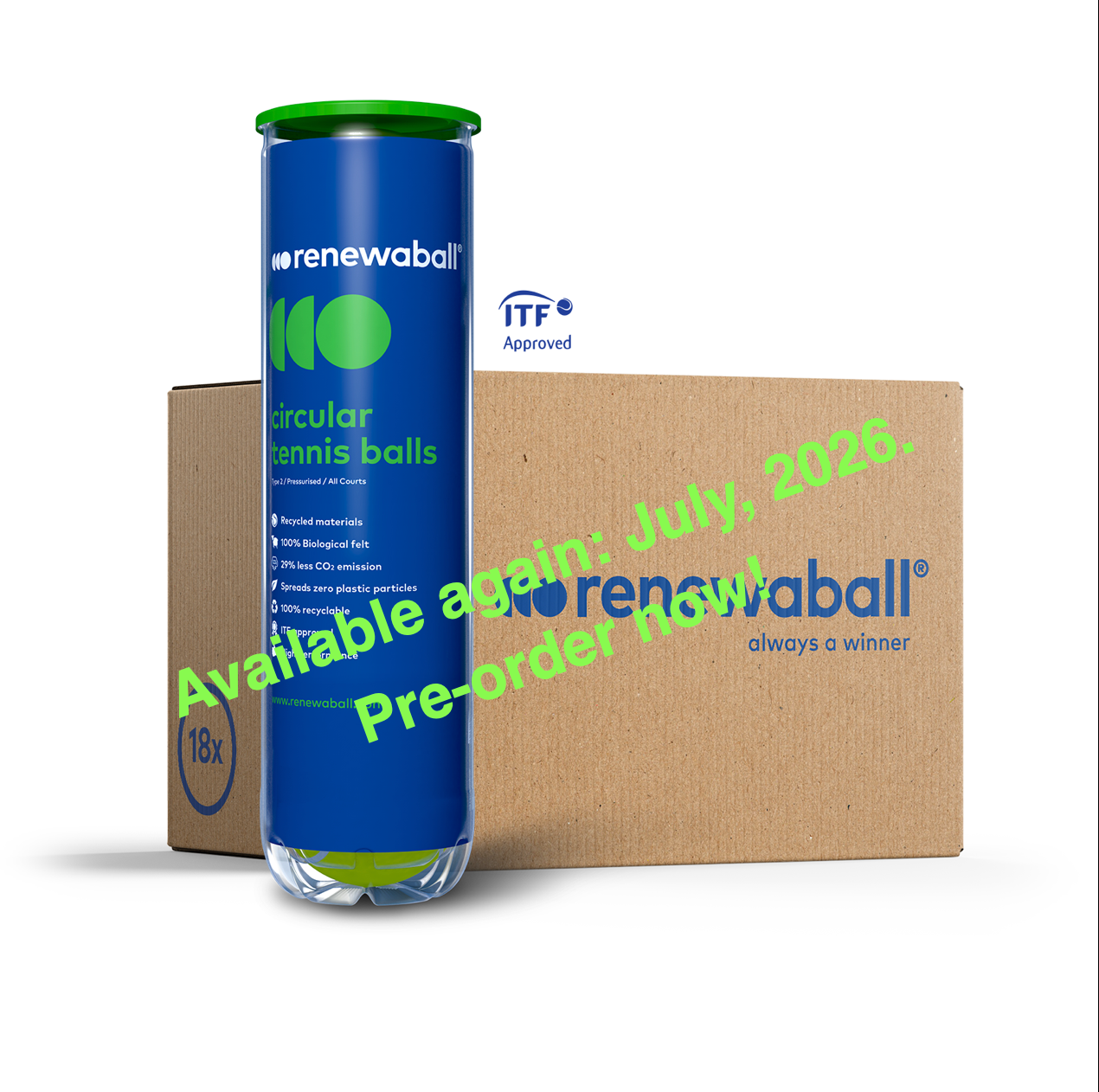 Renewaball - caja 18x4 pelotas de tenis