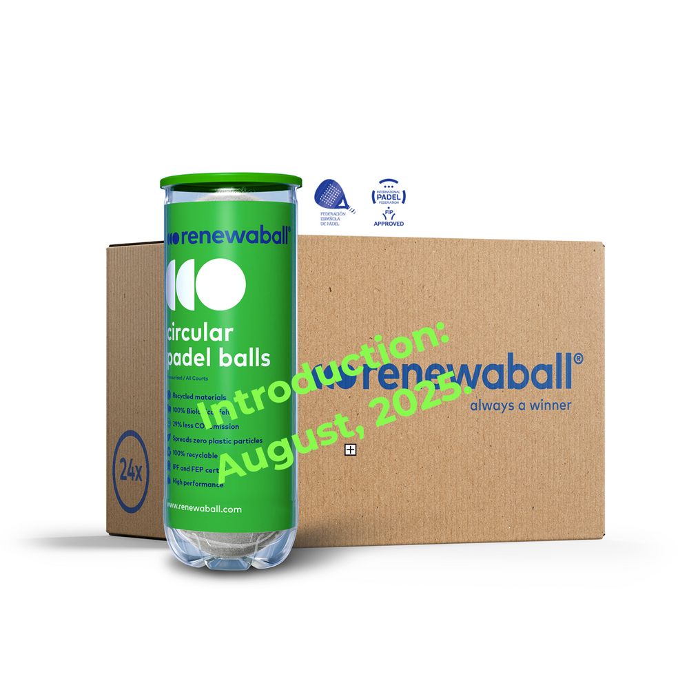 Renewaball 24x3 natural padel box: maak je padelspel meer sustainable met onze 24x3 doos met milieuvriendelijke ballen, nu in pink. IPF en FEP goedgekeurd voor elk baantype. Kies Renewaball voor een groenere padelsport!