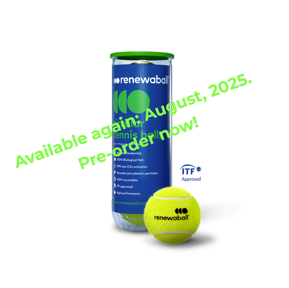 Renewaball 3 Tennisbälle: Machen Sie Ihr Tennisspiel nachhaltiger mit unserem Schlauch mit 3 umweltfreundlichen Bällen. ITF-geprüfte Leistung auf jedem Platz. Wählen Sie Renewaball für einen grüneren Tennissport!